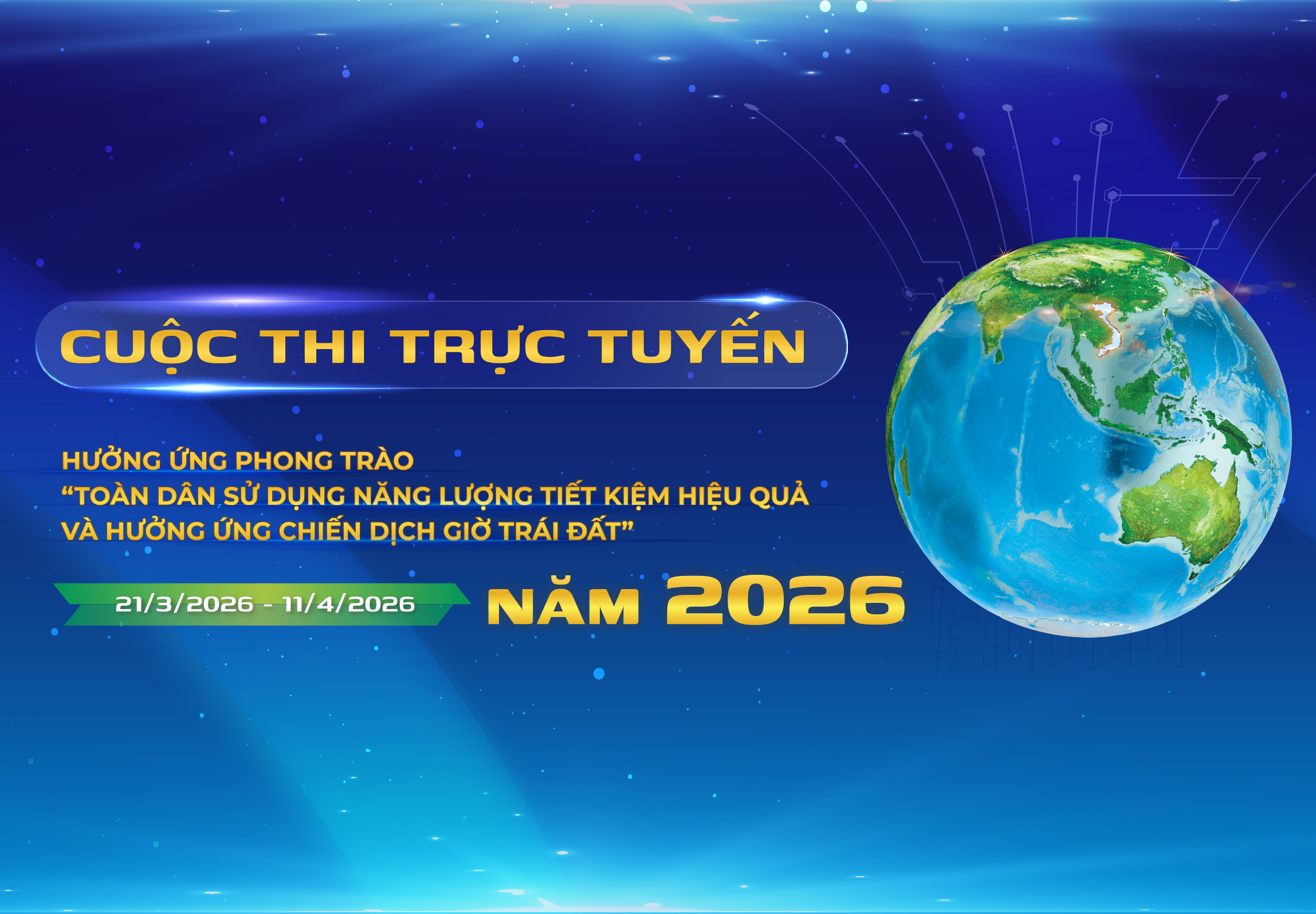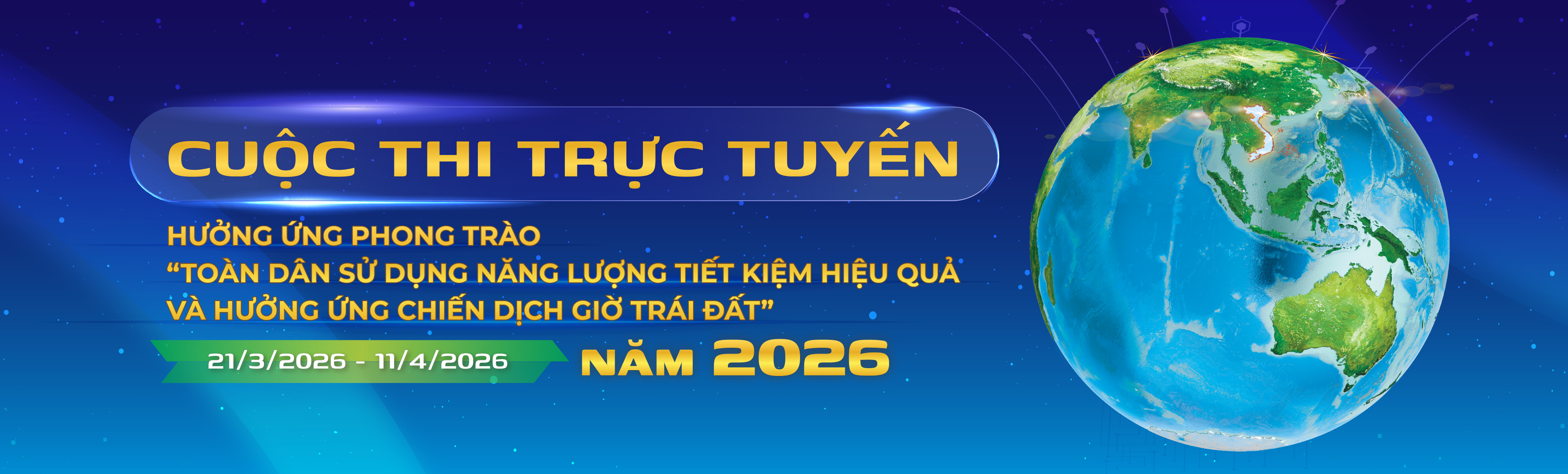 Cuộc thi trực tuyến hưởng ứng phong trào "Toàn dân sử dụng năng lượng tiết kiệm hiệu quả và hưởng ứng chiến dịch Giờ Trái đất năm 2026" do Bộ Công Thương tổ chức. Cuộc thi nhằm đẩy mạnh tuyên truyền, phổ biến kiến thức về tiết kiệm năng lượng, tiết kiệm điện, bảo vệ môi trường; đồng thời giúp nâng cao nhận thức, ý thức của cộng đồng trong việc tiết kiệm năng lượng, bảo vệ môi trường.